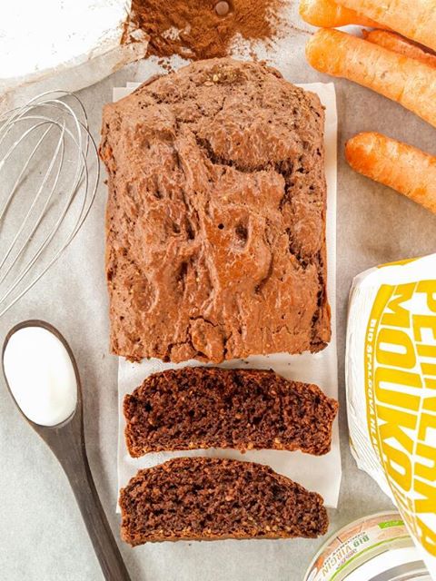 Mouku smícháme spolu s kypřícím práškem, proteinem. Následně si v misce nad voldní lázni rozpustíme čokoládu, olej, kakao a cukr. Caro zalejem trochou vody a promícháme. Uvařenou mrkev si nastouháme najemno a přidáme k mouce, poté i čokoládovou směs, Caro a žloutek. Na závěr přidáme vyšlehaný bílek. Pečeme na 180° 30-35 minut.